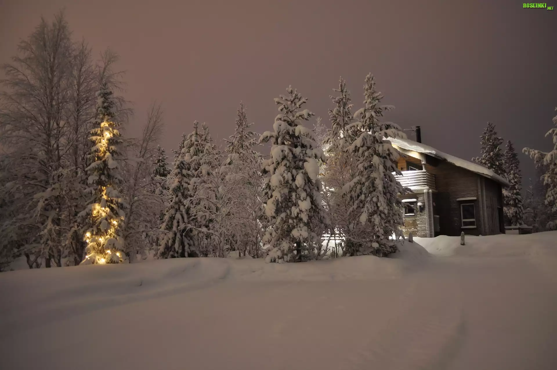 Rośliny: Zima, Domek, Ośnieżone, Drzewa