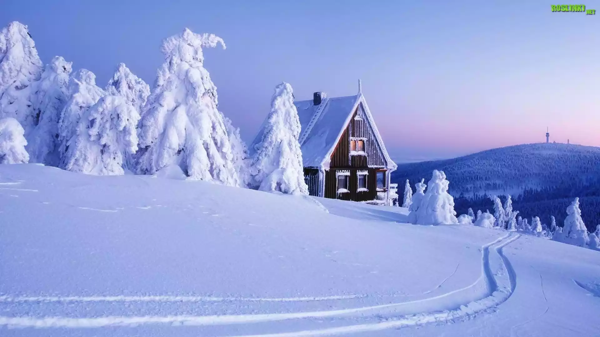Rośliny: Zima, Domek, Ośnieżone, Drzewa