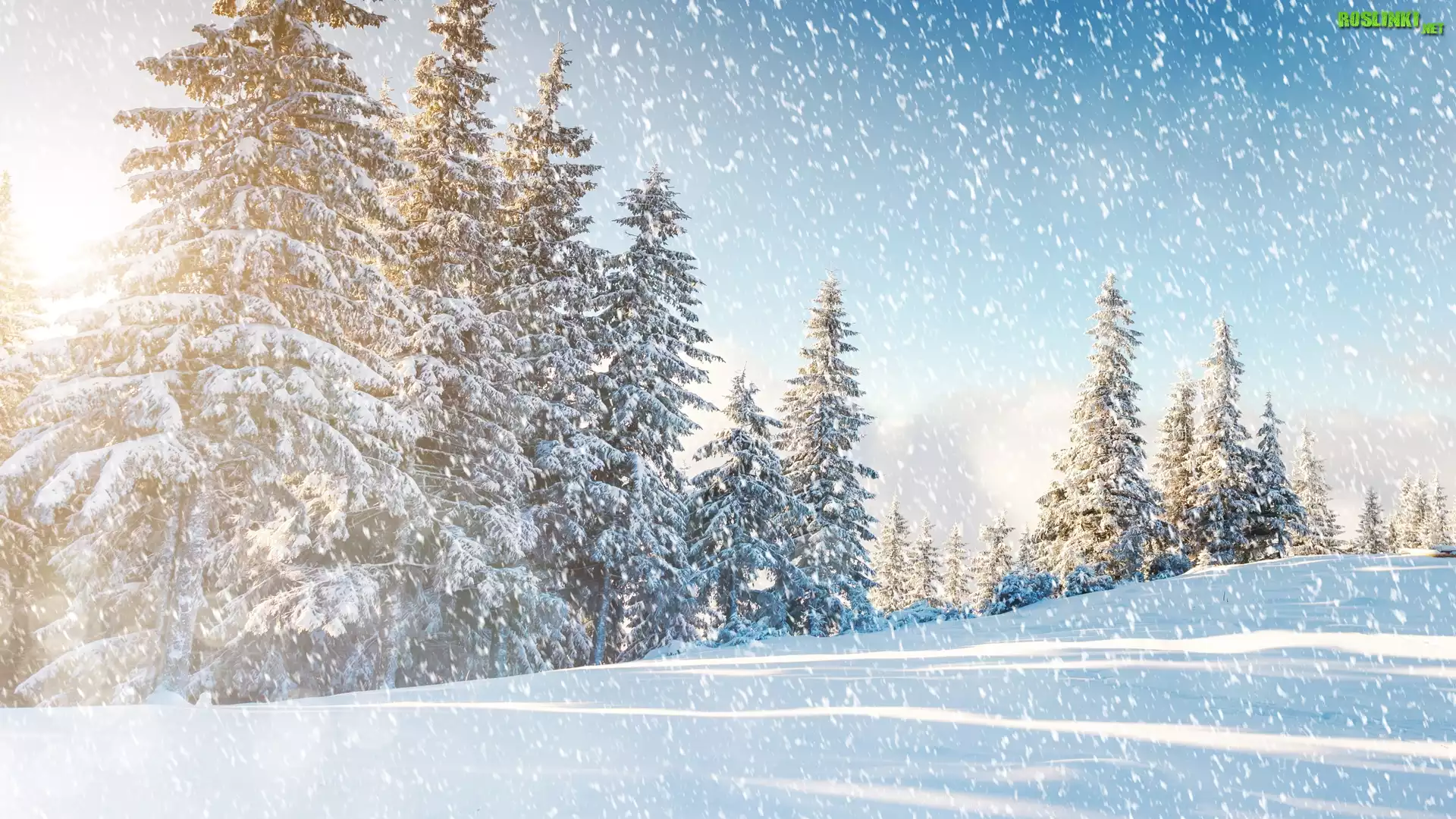 Zima, Padający, Śnieg, Ośnieżone, Świerki