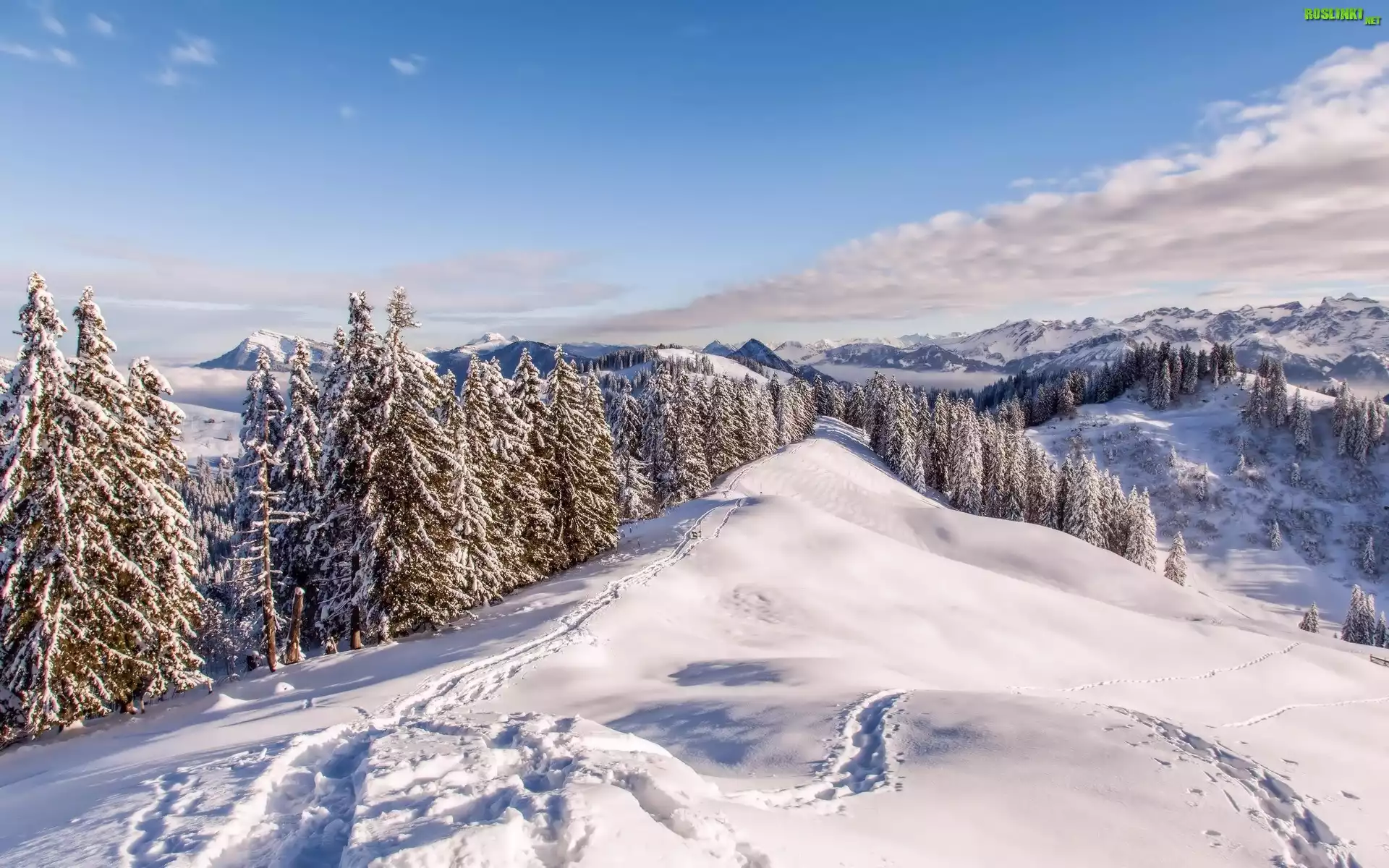 Rośliny: Zima, Wzgórza, Ośnieżone, Świerki