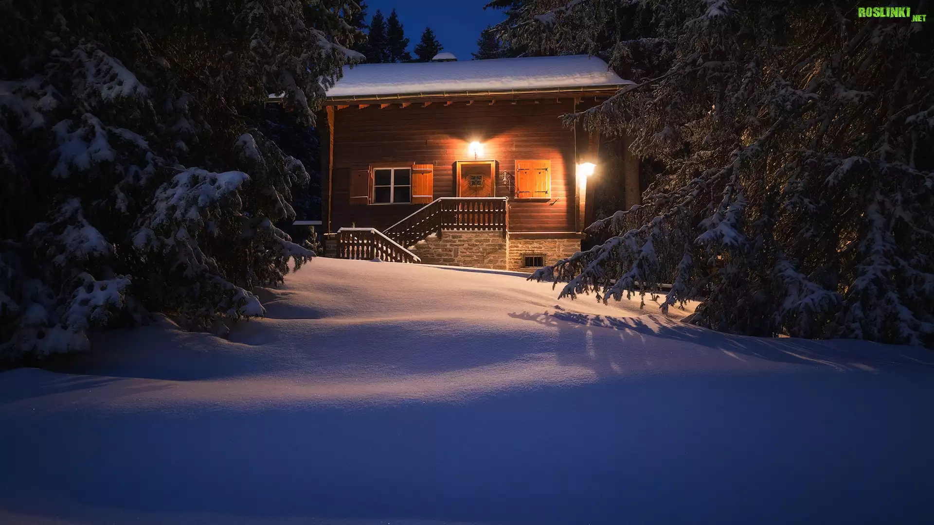 Rośliny: Zima, Drzewa, Las, Śnieg, Oświetlony, Dom