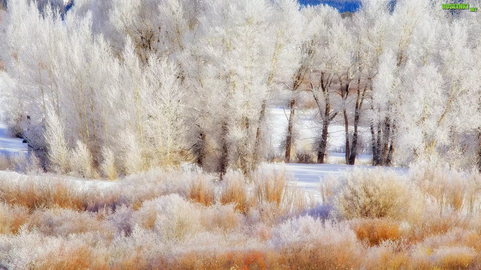 Rośliny: Oszronione, Krzewy, Drzewa, Zima