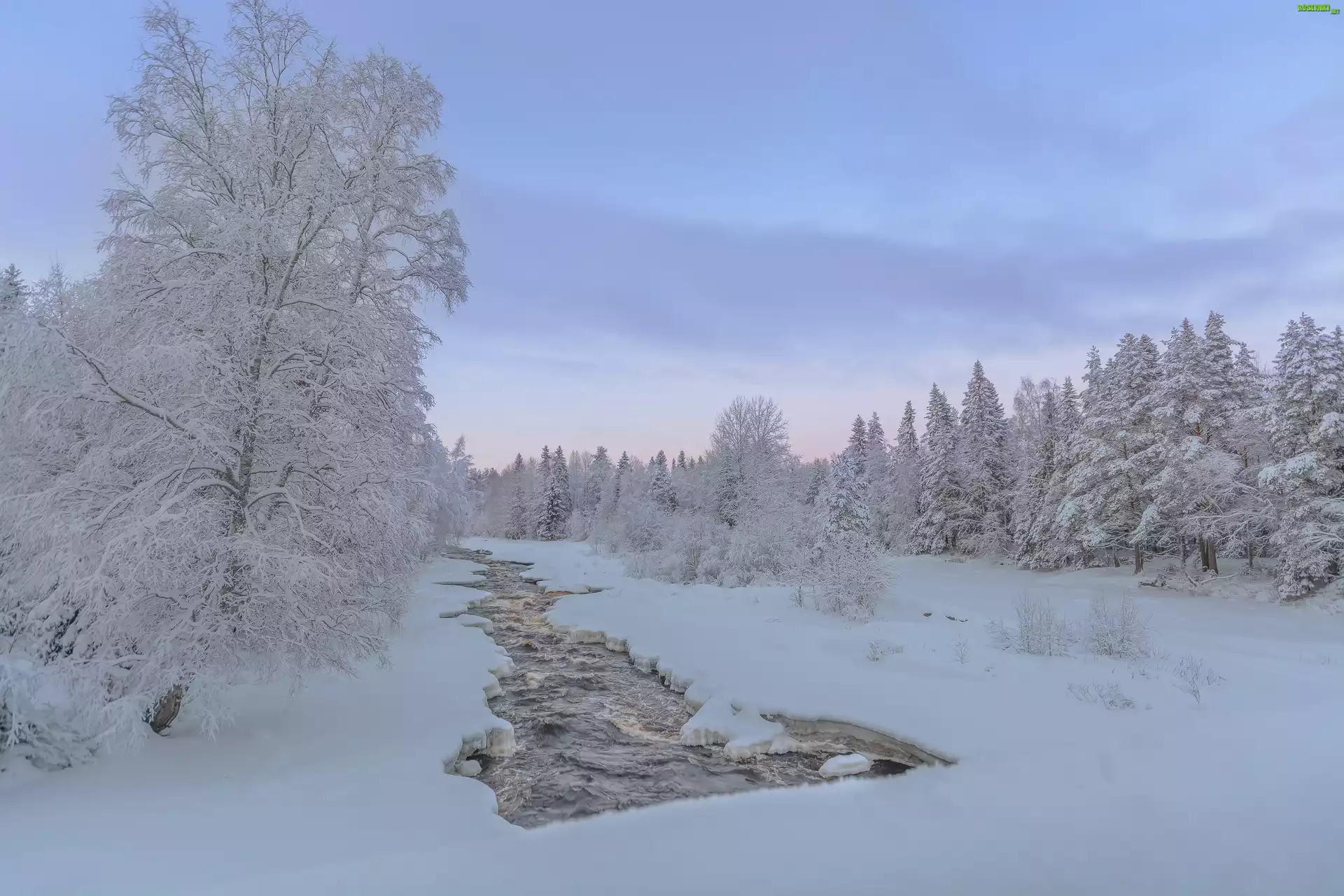 Zima, Rzeka, Las, Oszronione, Drzewa