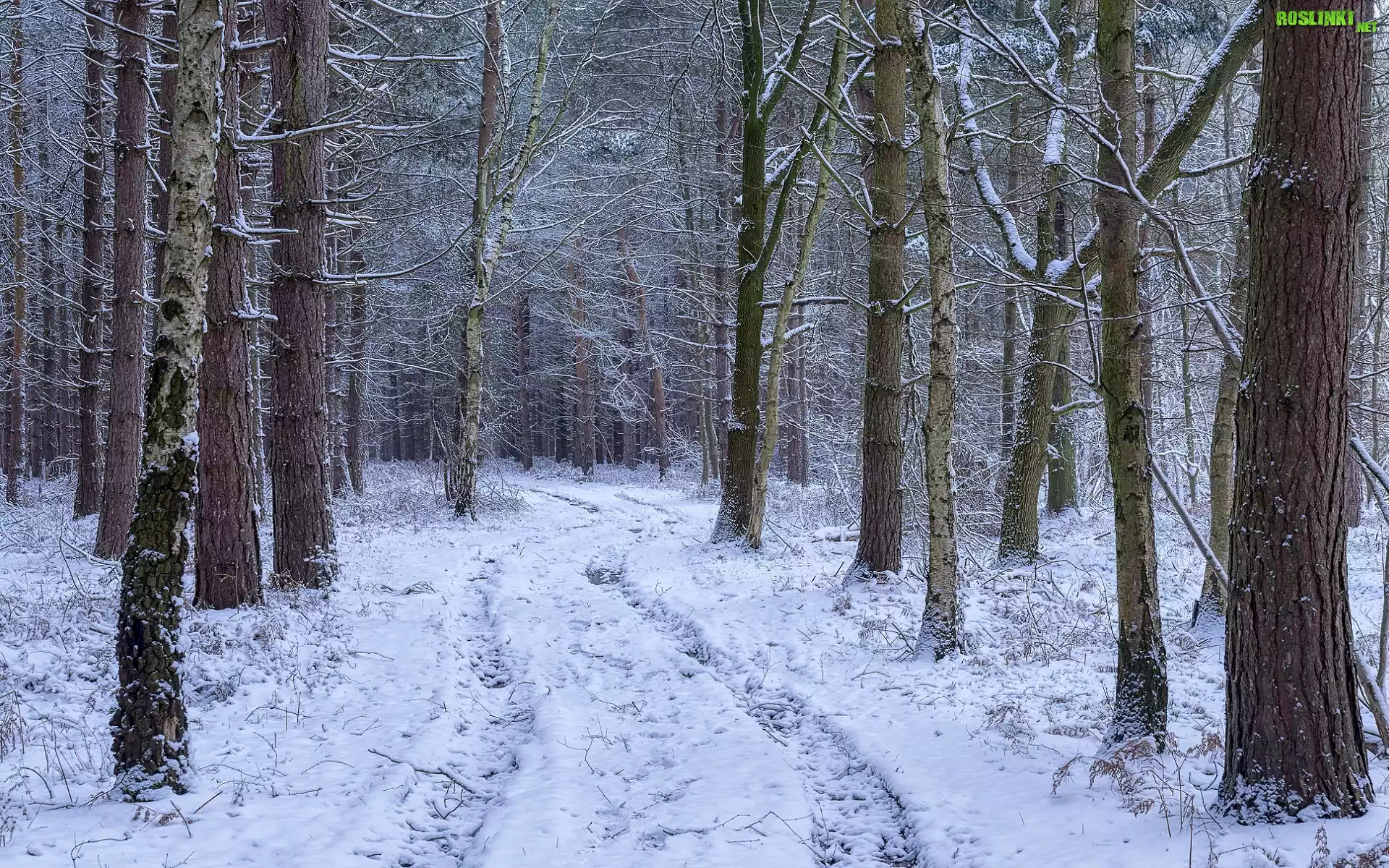 Rośliny: Zima, Las, Śnieg, Droga, Oszronione, Drzewa