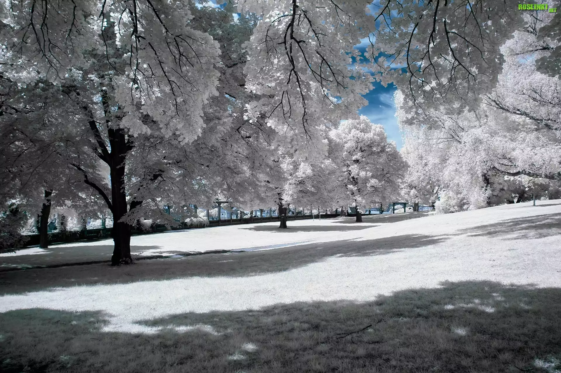 Rośliny: Zima, Park, Oszronione, Drzewa
