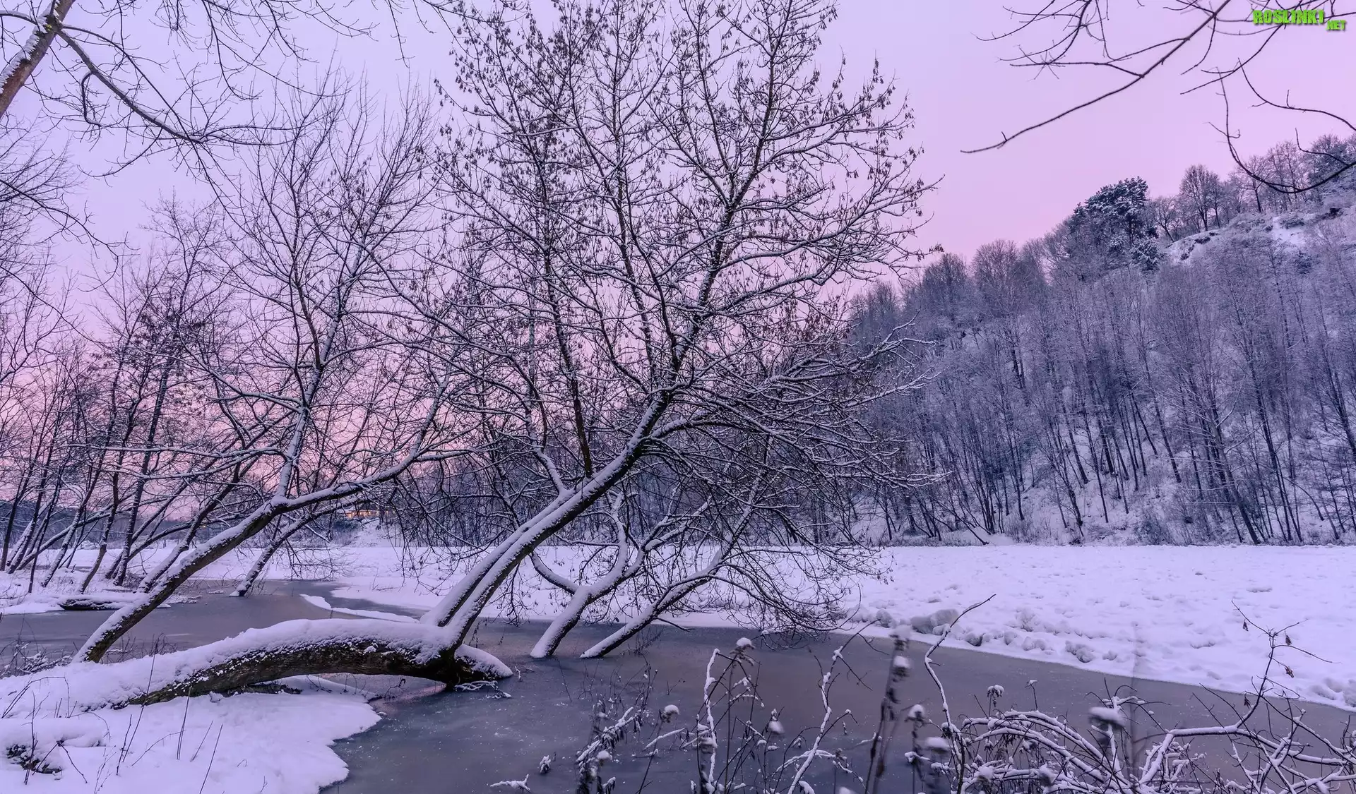 Rośliny: Zima, Zamarznięta, Rzeka, Oszronione, Drzewa