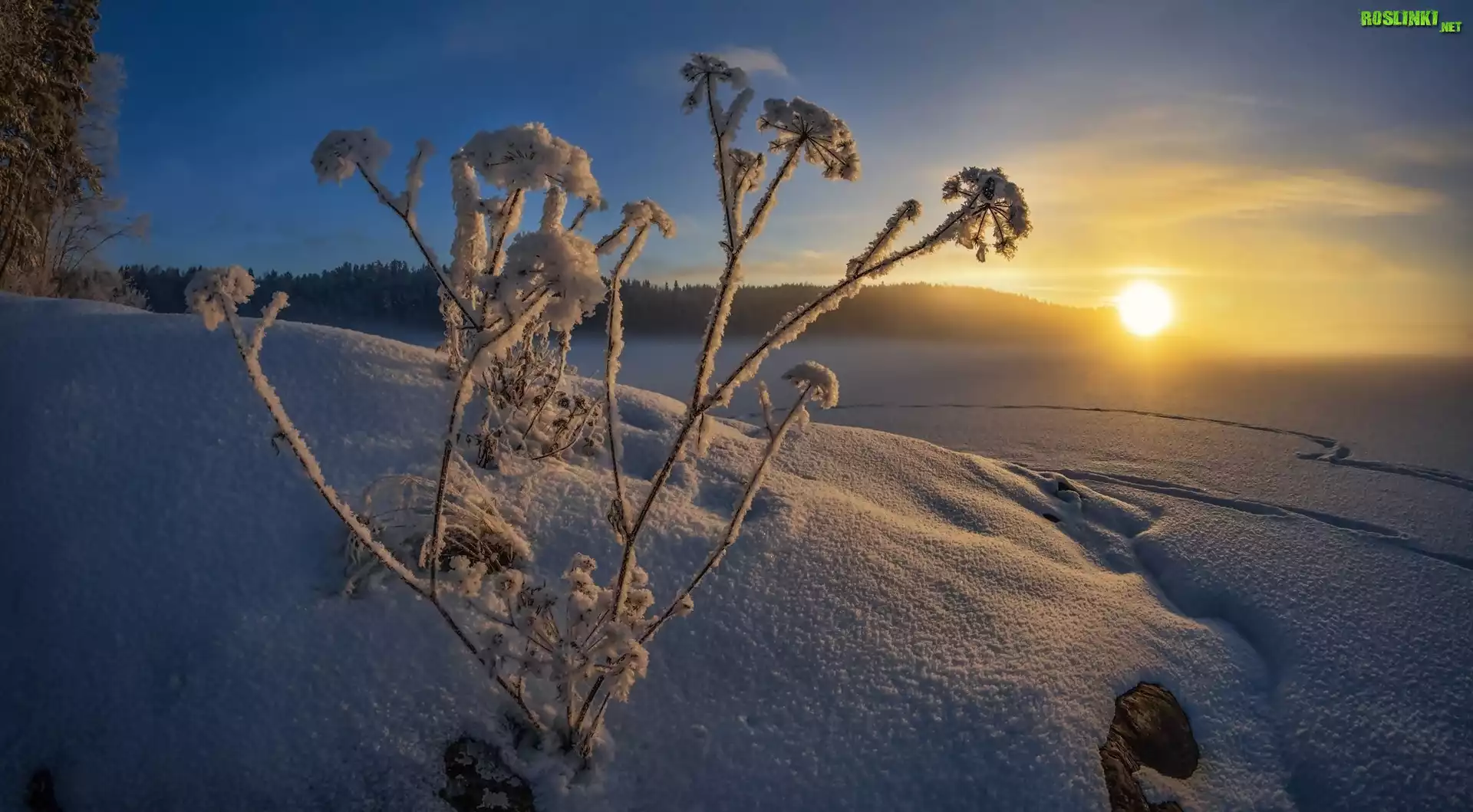 Rośliny: Zima, Wschód słońca, Oszronione, Rośliny