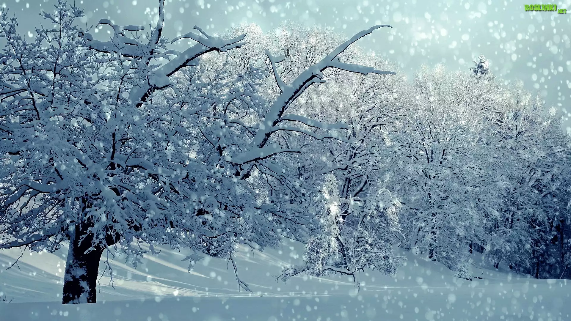 Rośliny: Zima, Drzewa, Padający, Śnieg
