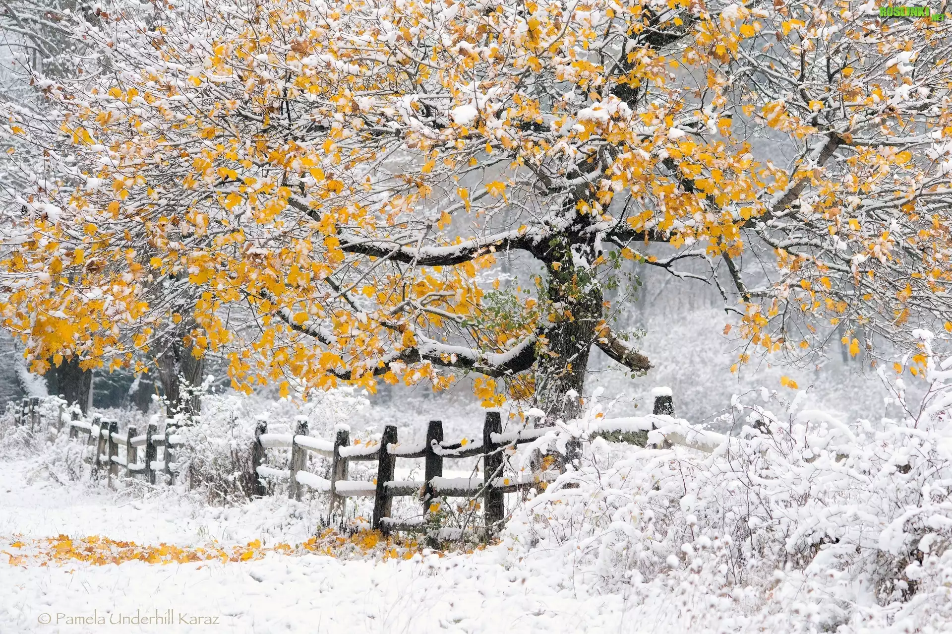 Rośliny: Zima, Śnieg, Drzewa, Płot, Las