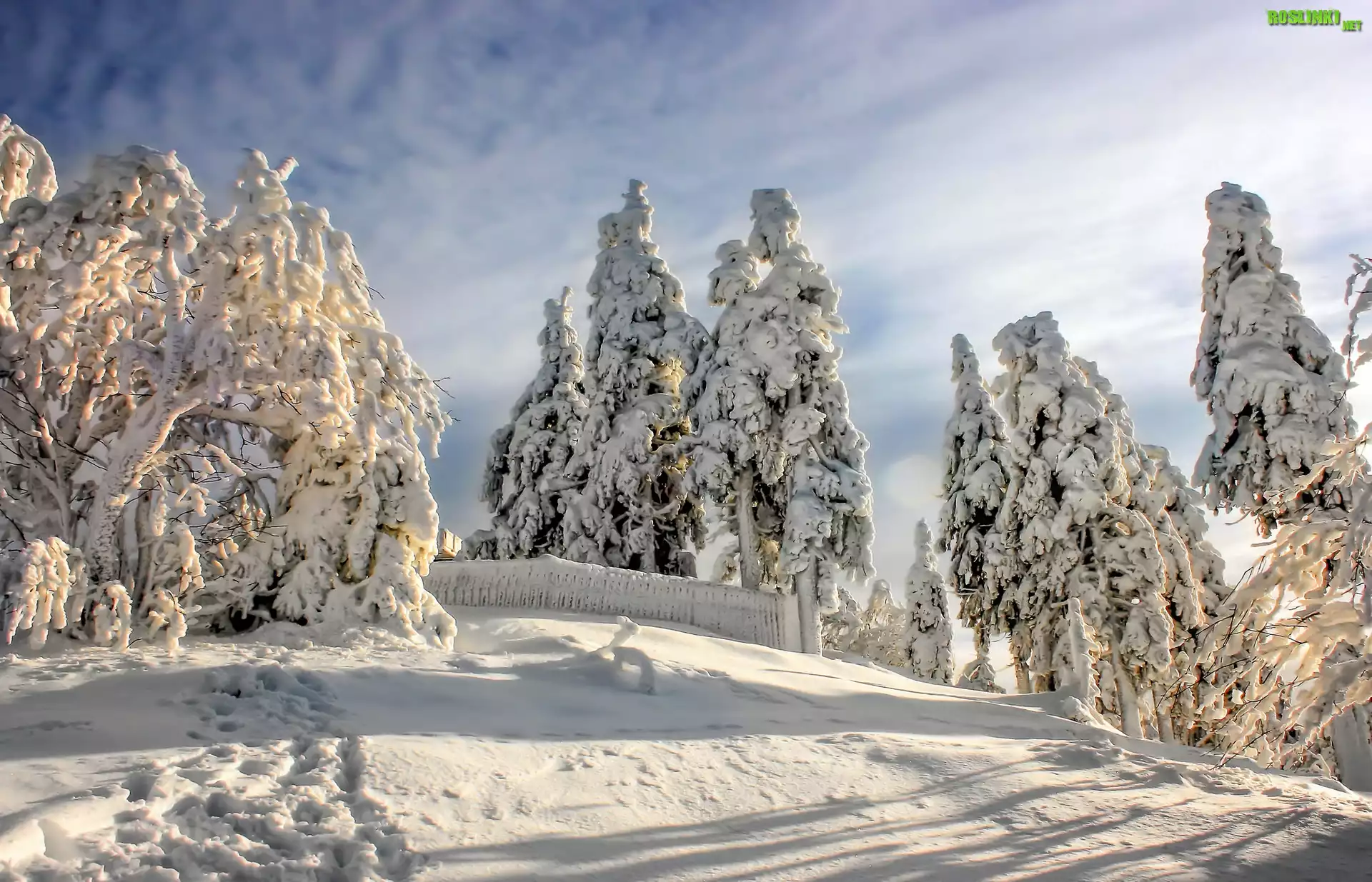 Rośliny: Zima, Słoneczny, Poranek, Ośnieżony, Płot, Drzewa