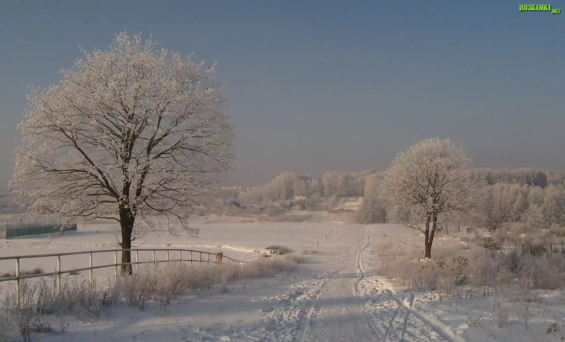 Rośliny: Zima, Śnieg, Polna, Droga