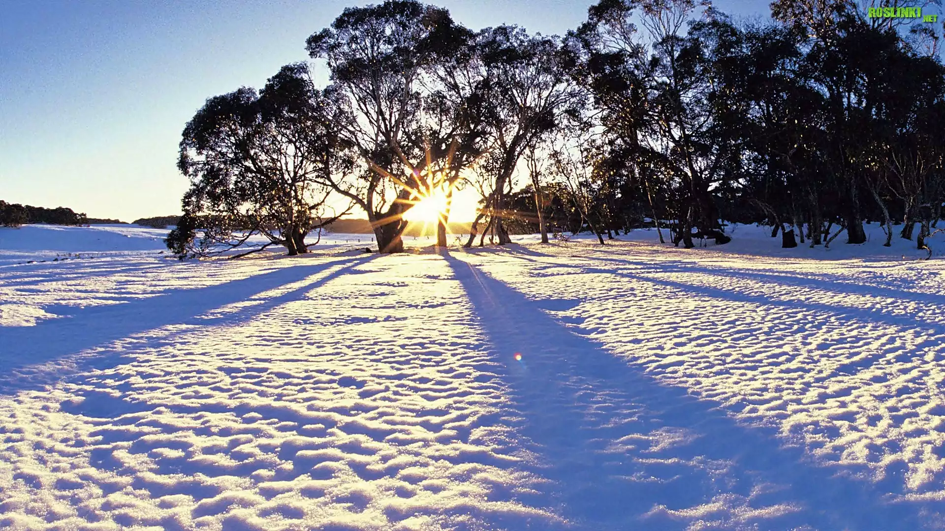 Rośliny: Zima, Drzewa, Ośnieżone, Pole, Promienie, Słońca