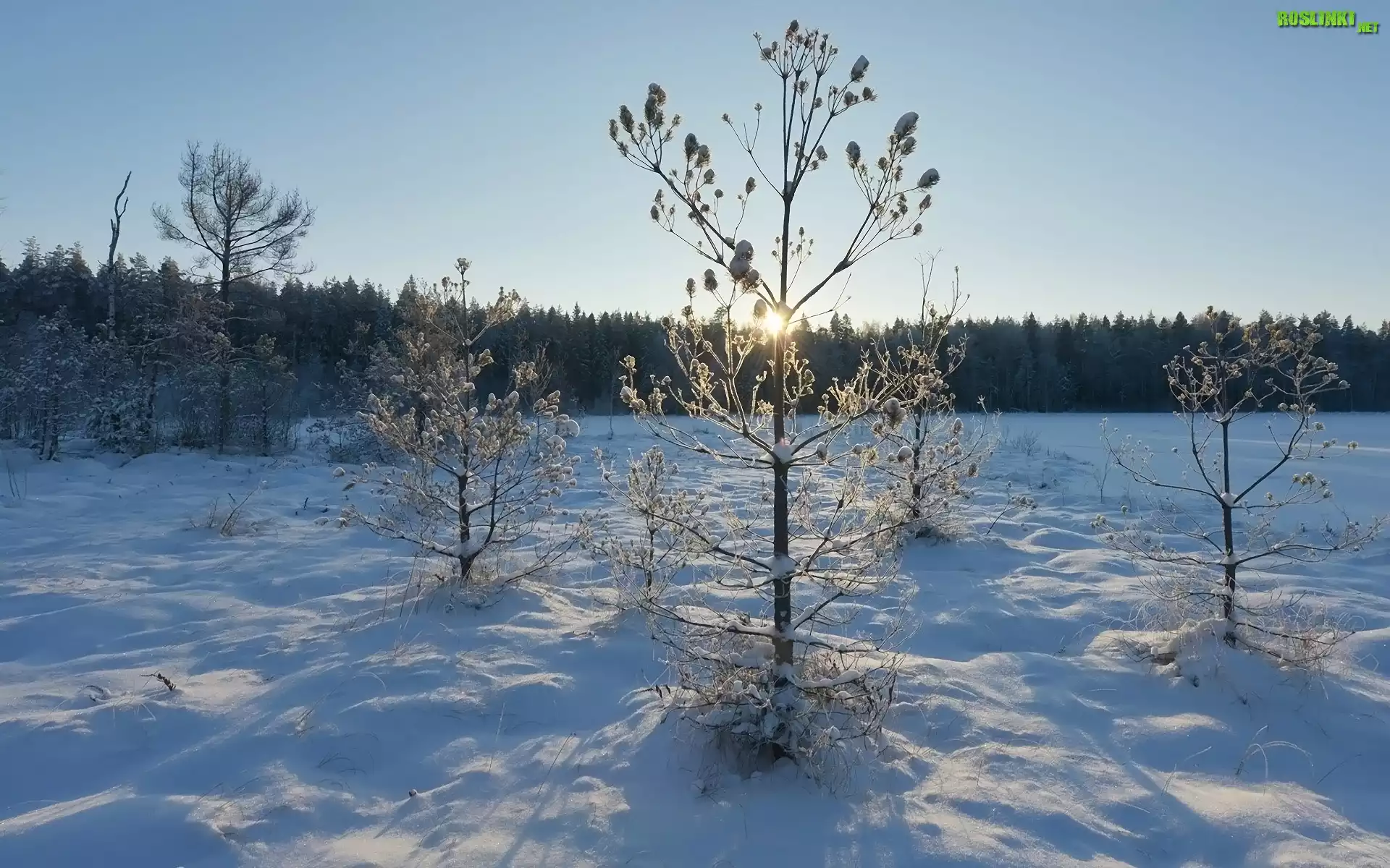 Rośliny: Zima, Drzewa, Rośliny, Śnieg, Promienie słońca