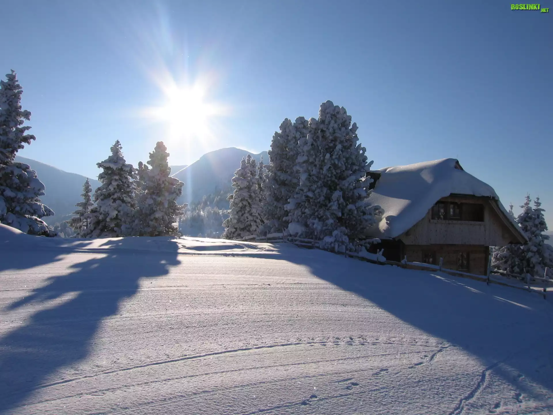 Rośliny: Zima, Ośnieżone, Drzewa, Dom, Przebijające, Światło