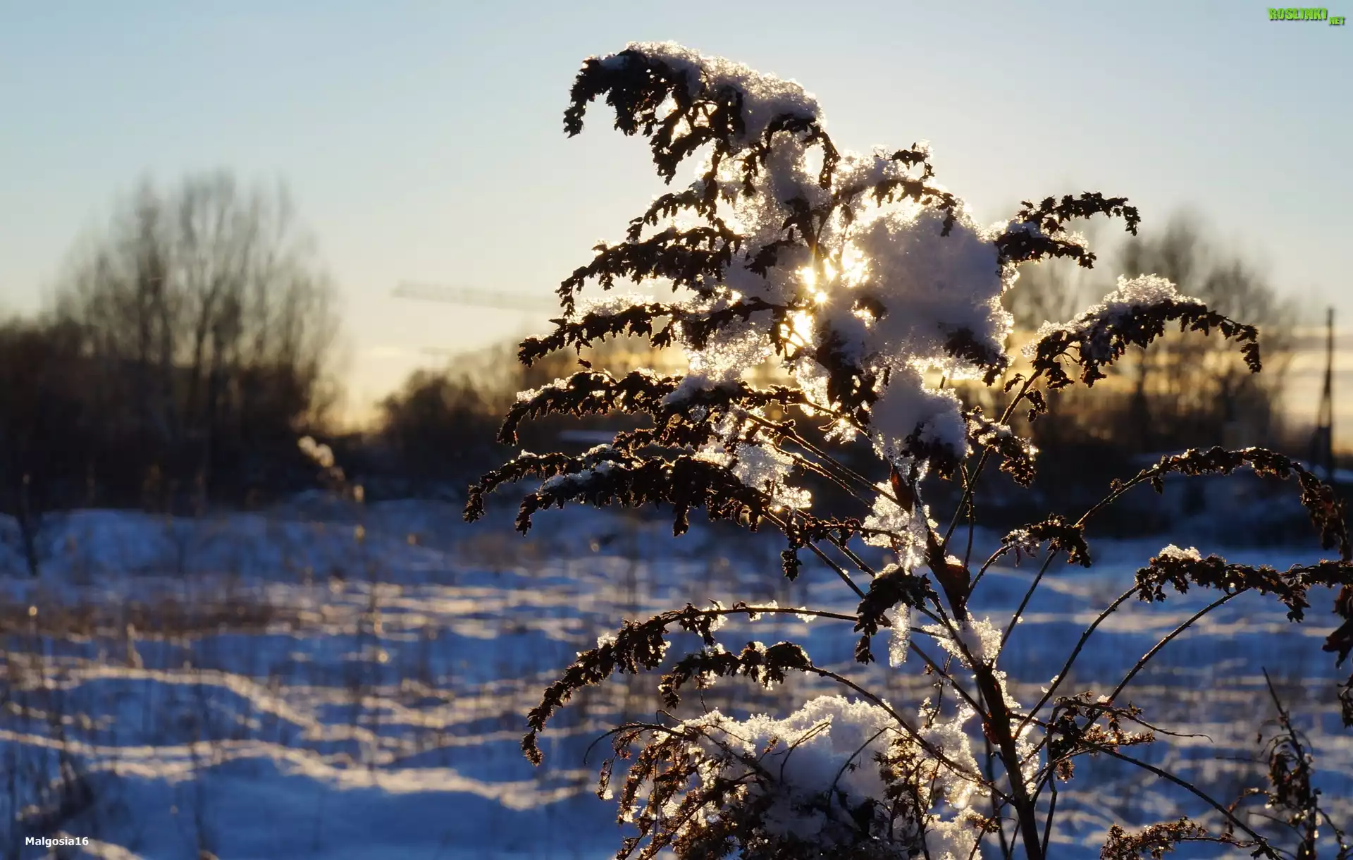 Rośliny: Zima, Śnieg, Uschnięta, Roślina, Przebijające, Światło