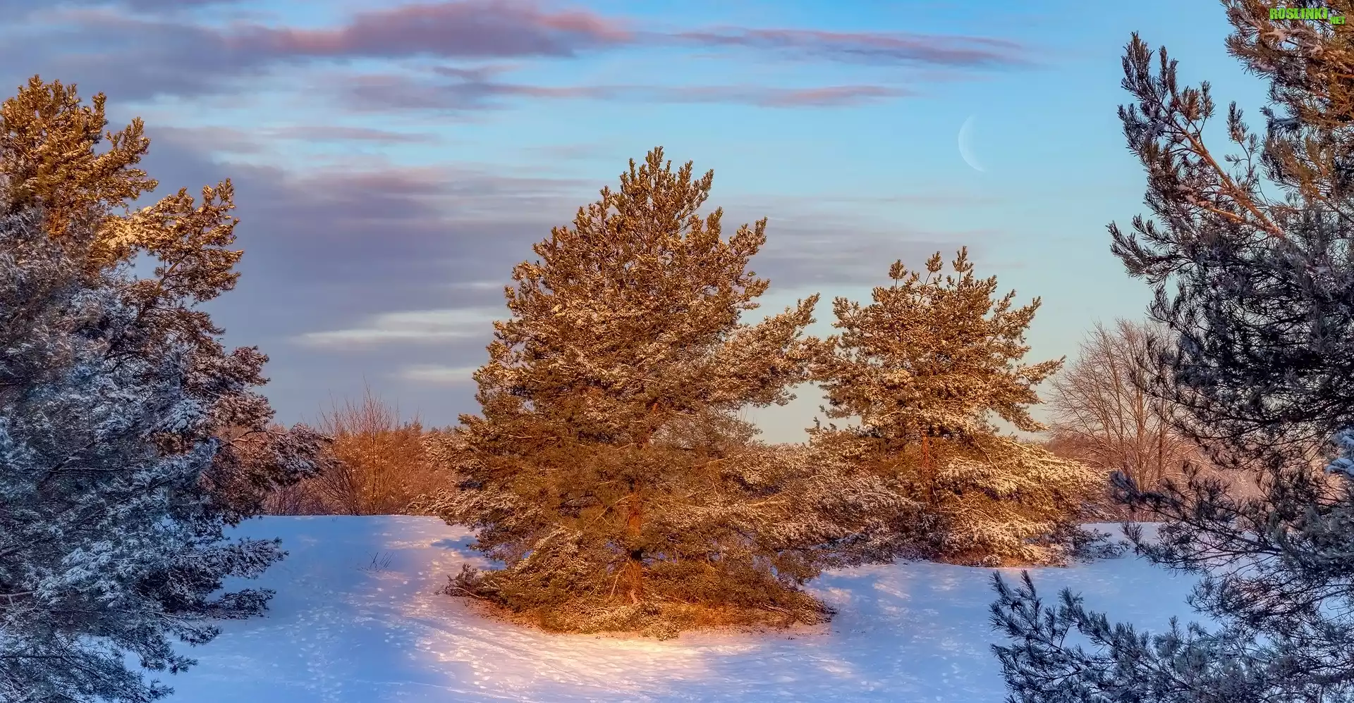 Zima, Śnieg, Drzewa, Rośliny, Księżyc