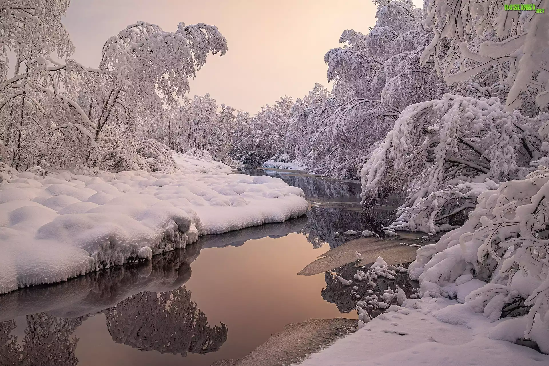 Rośliny: Zima, Śnieg, Rzeka, Drzewa, Rośliny, Odbicie