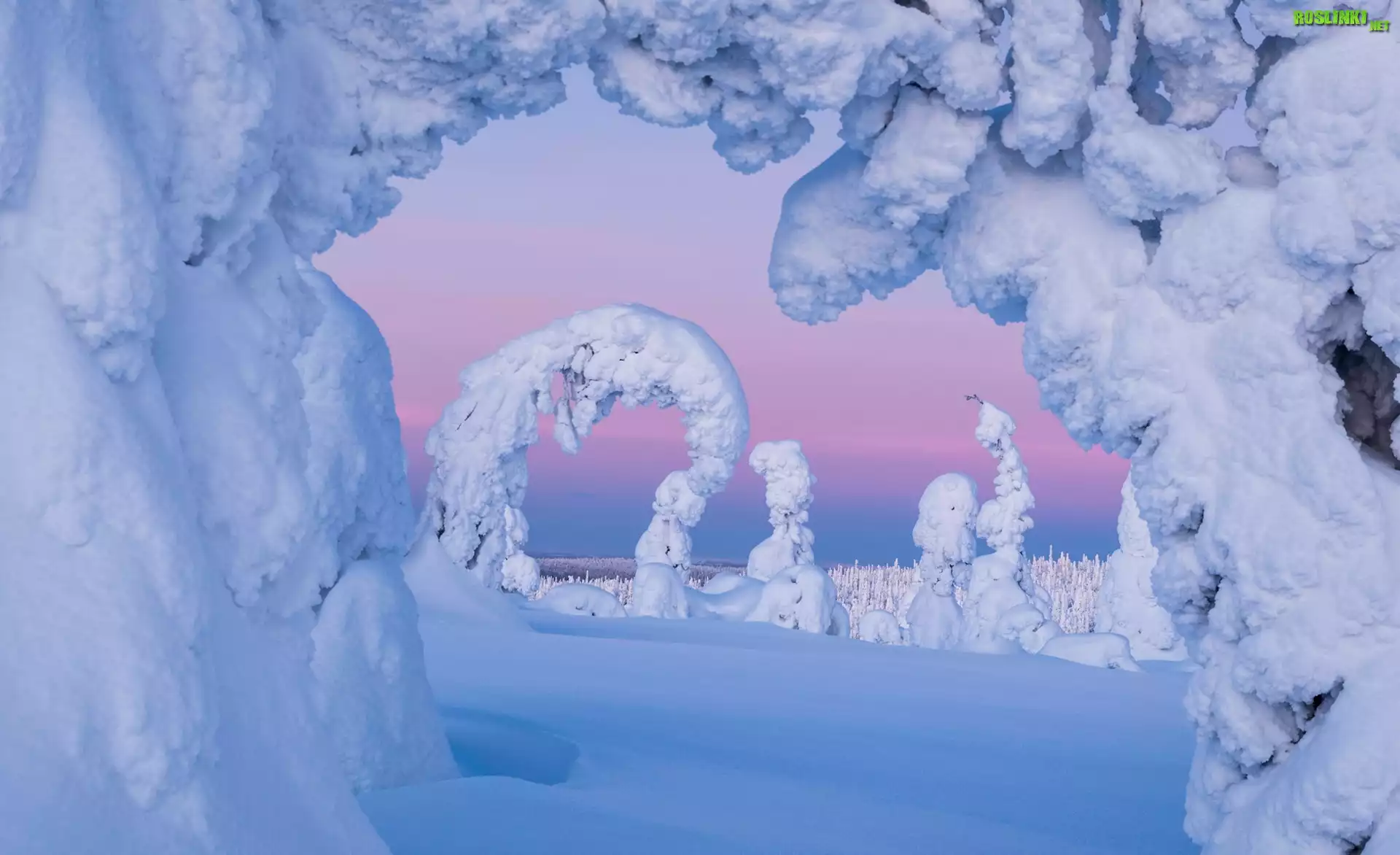 Rośliny: Zima, Ośnieżone, Drzewa, Różowe, Niebo