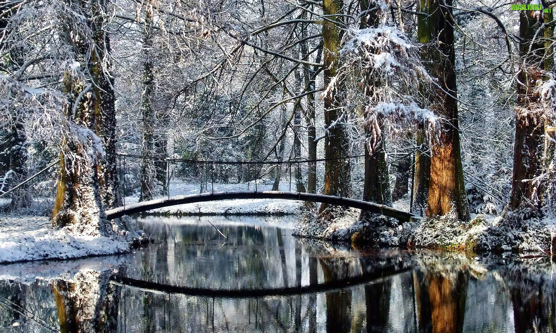 Rośliny: Zima, Las, Rzeczka, Mostek