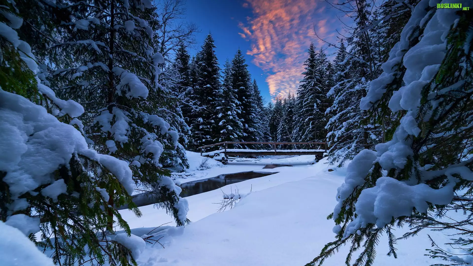 Rośliny: Zima, Las, Drzewa, Rzeka, Most