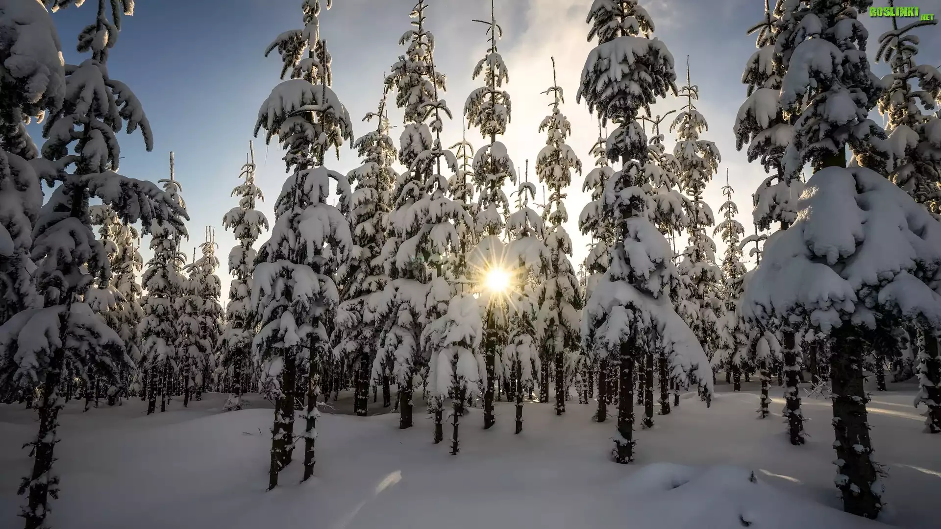 Rośliny: Zima, Drzewa, Promienie słońca, Śnieg