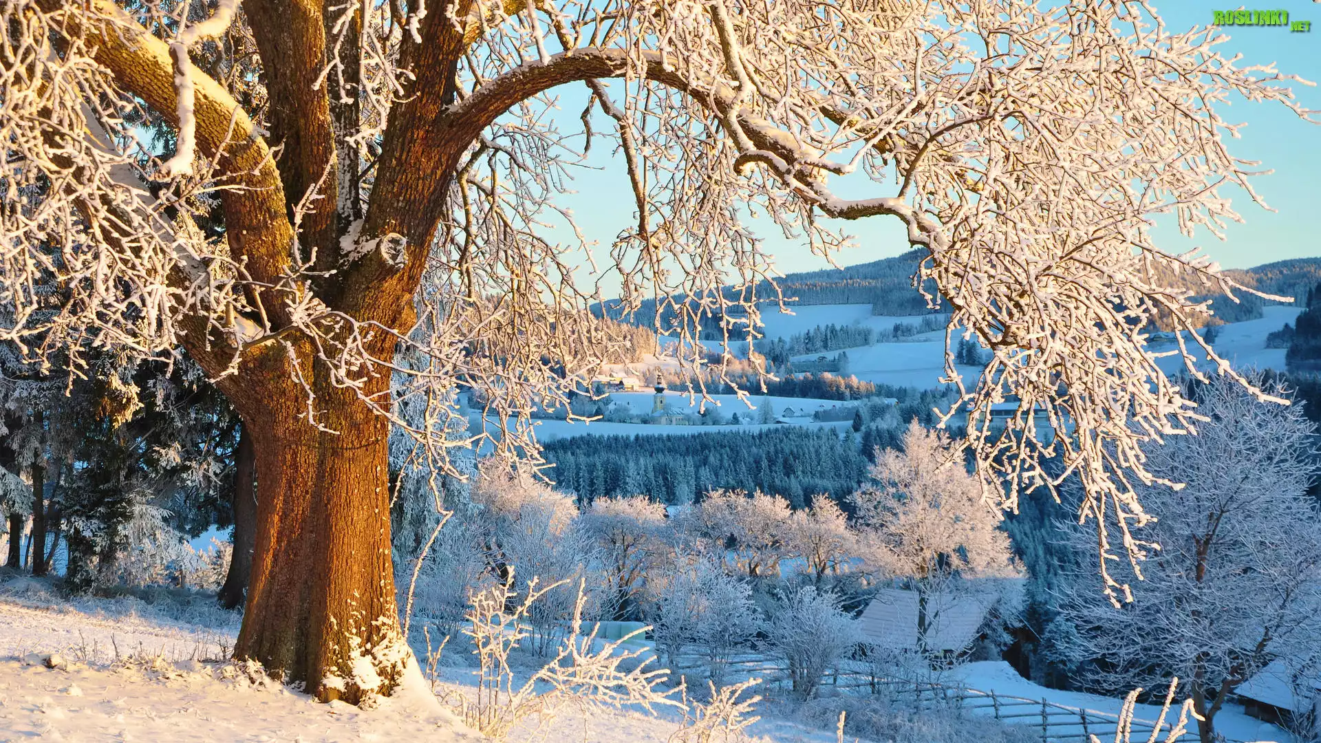 Rośliny: Zima, Oszronione, Drzewa, Słoneczny, Dzień