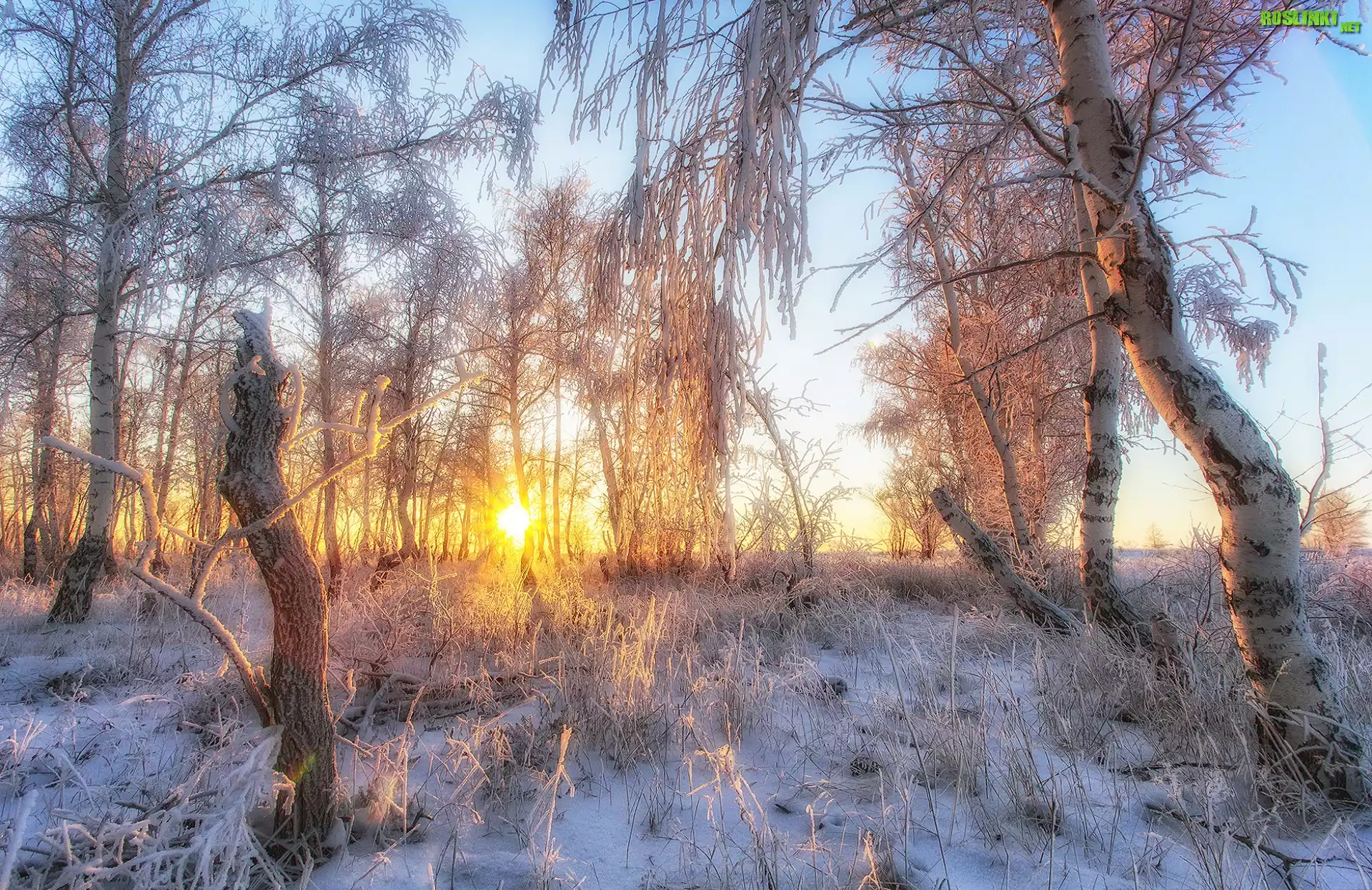 Rośliny: Zima, Brzozy, Oszronione, Gałęzie, Słoneczny, Blask