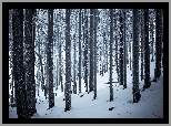 Las, Zima, Åšnieg, Drzewa, Pnie