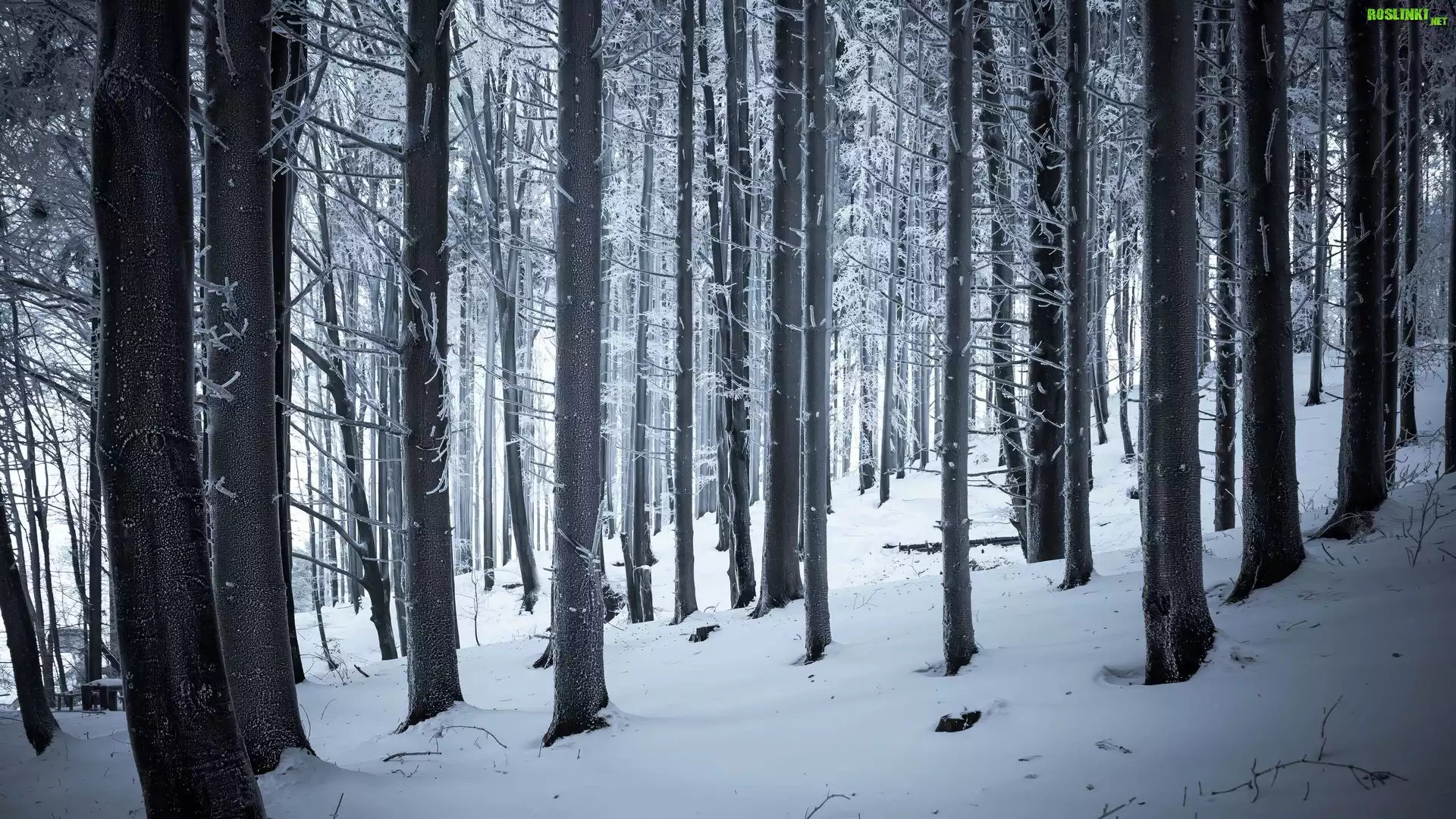 Rośliny: Las, Zima, Śnieg, Drzewa, Pnie