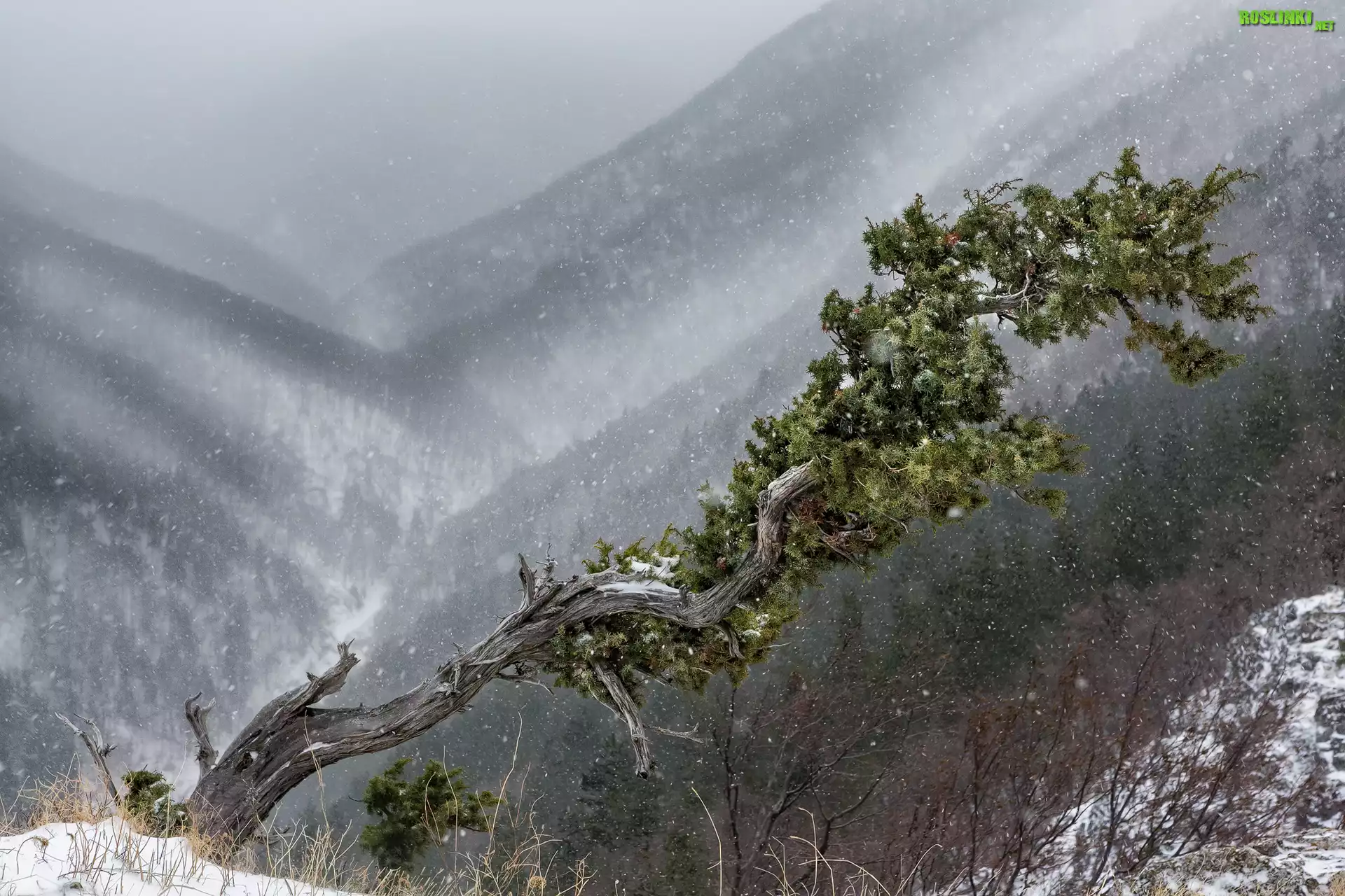 Rośliny: Zima, Góry, Śnieg, Drzewa, Sosna, Krzewy