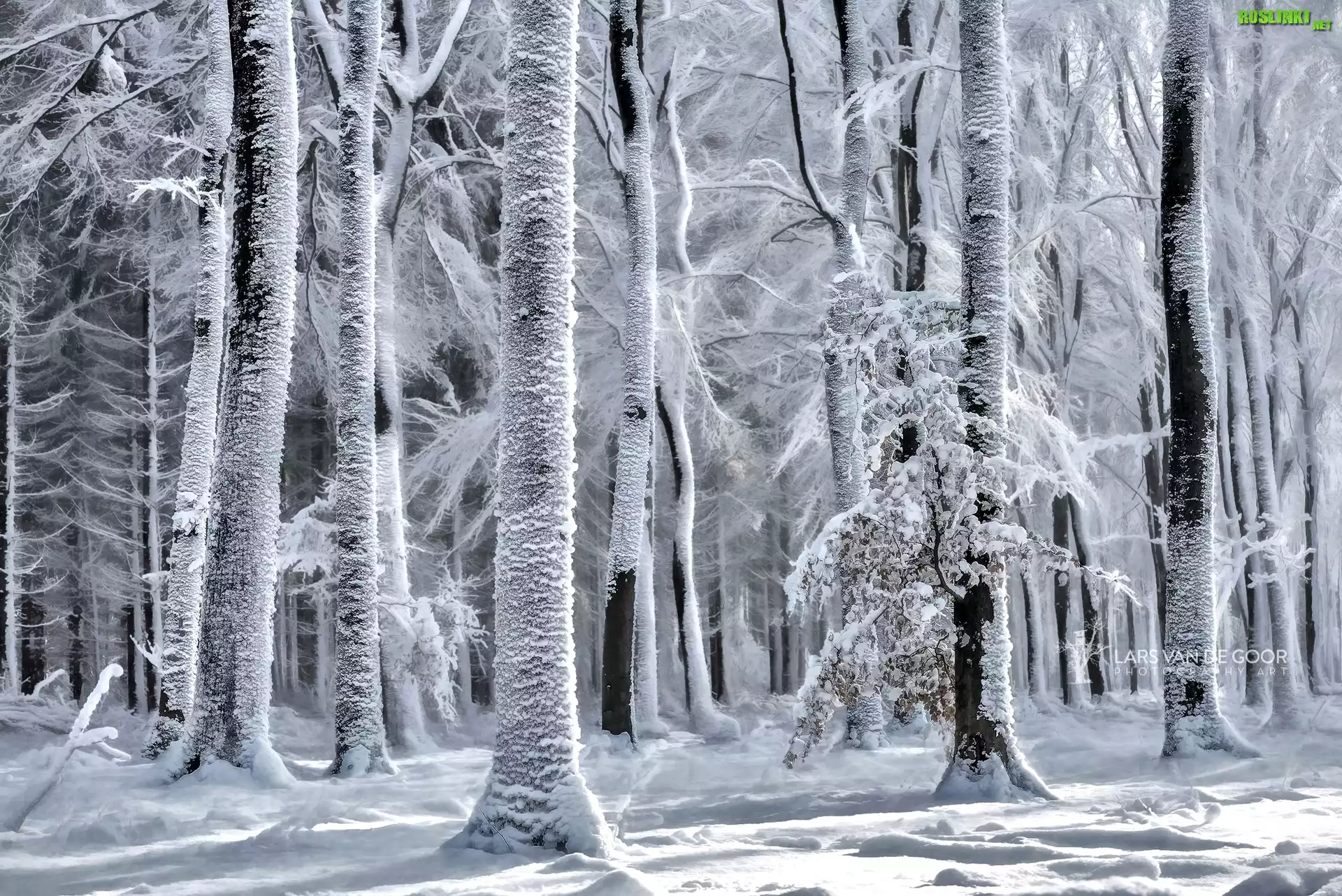 Rośliny: Zima, Las, Przebijające światło, Drzewa