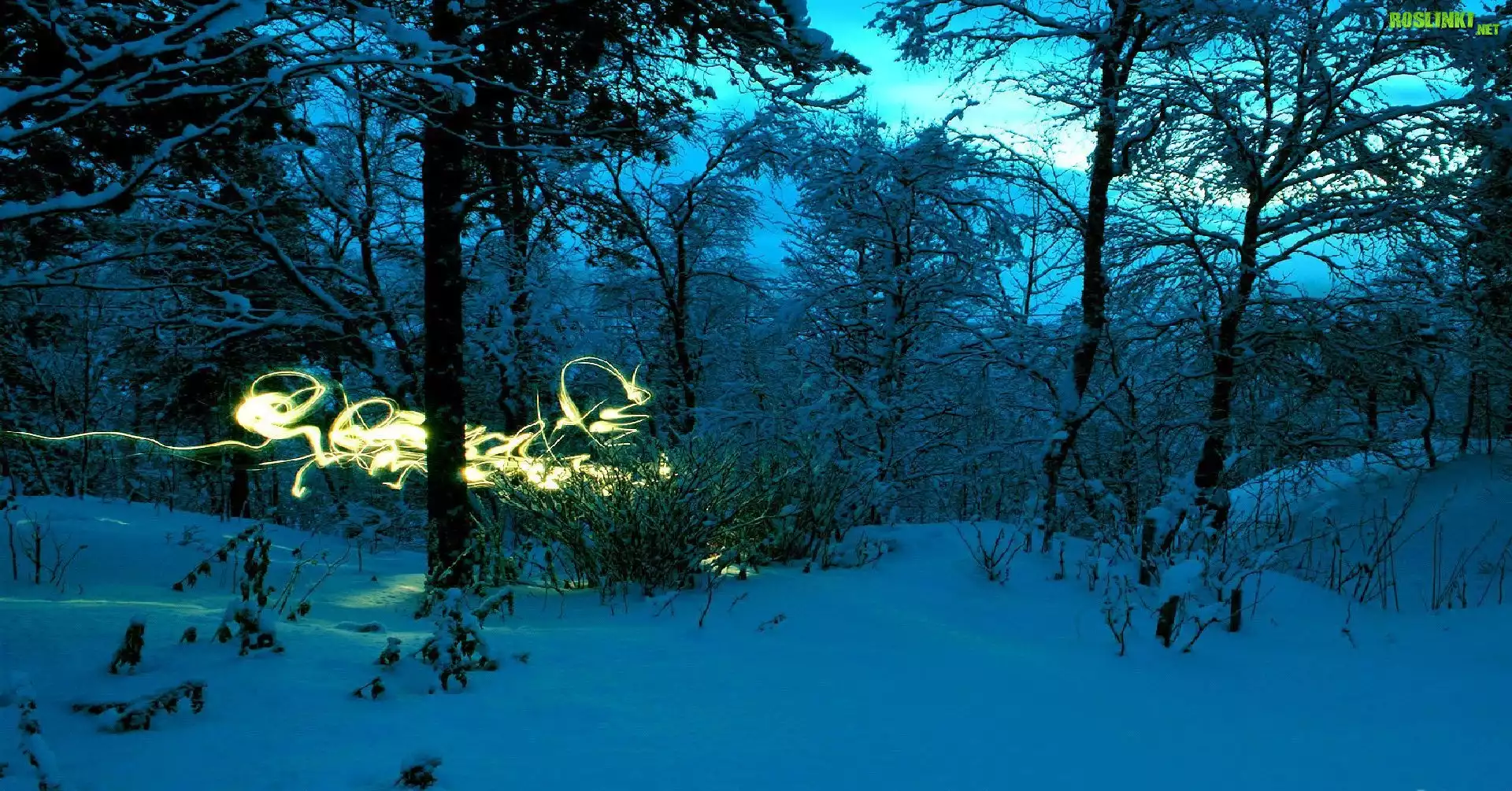 Rośliny: Zima, Drzewa, Światełko, Noc