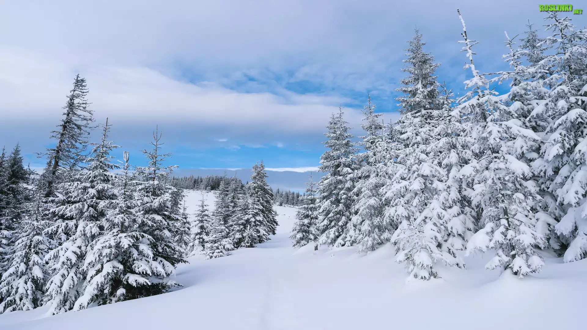 Rośliny: Zima, Wzgórza, Las, Świerki, Chmury