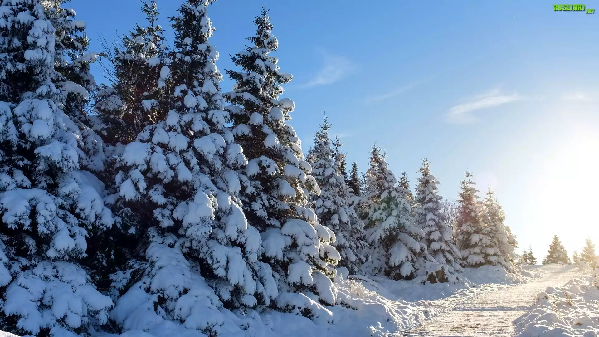 Rośliny: Zima, Ośnieżone, Świerki, Droga