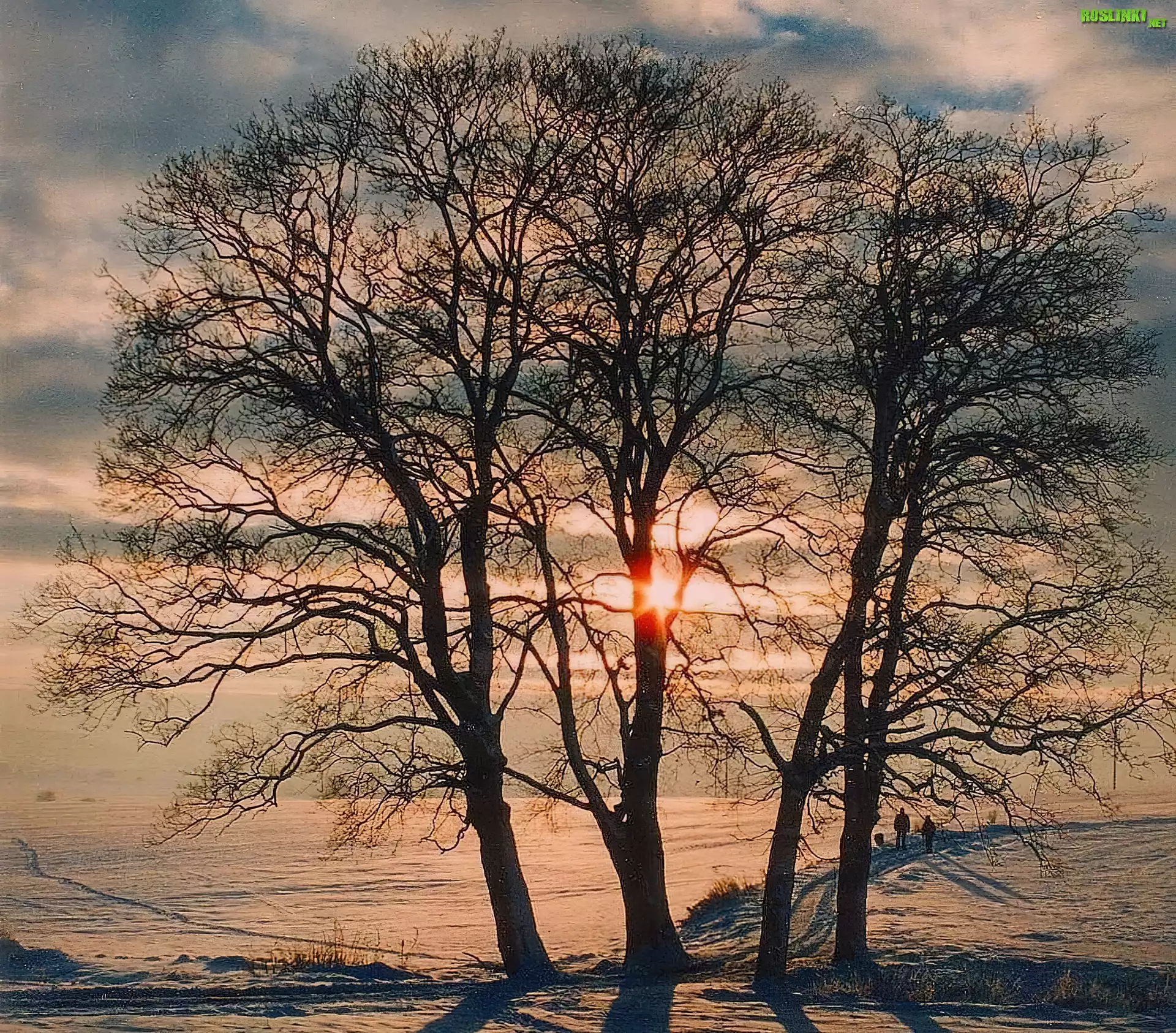 Rośliny: Zima, Drzewa, Zachód, Słońca