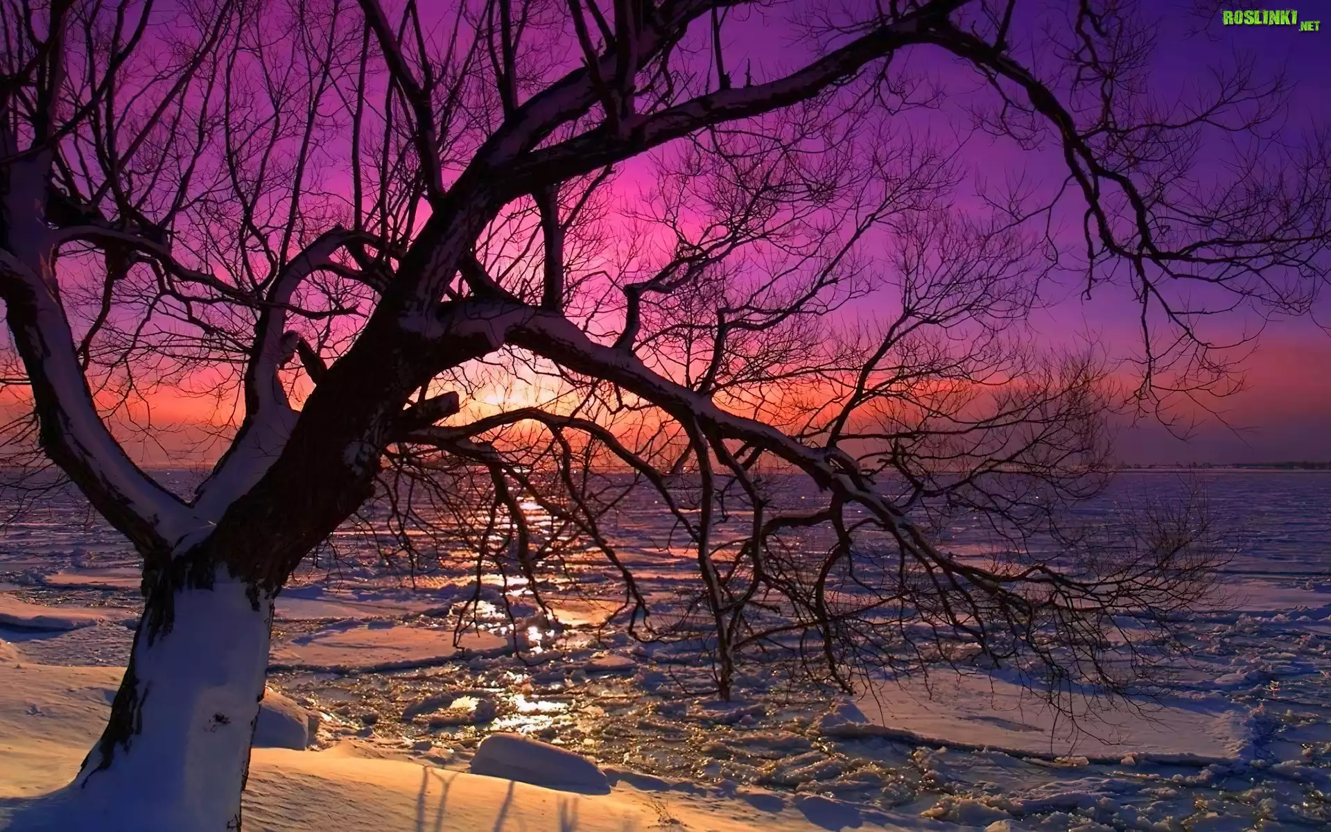 Rośliny: Zima, Drzewo, Zachód Słońca