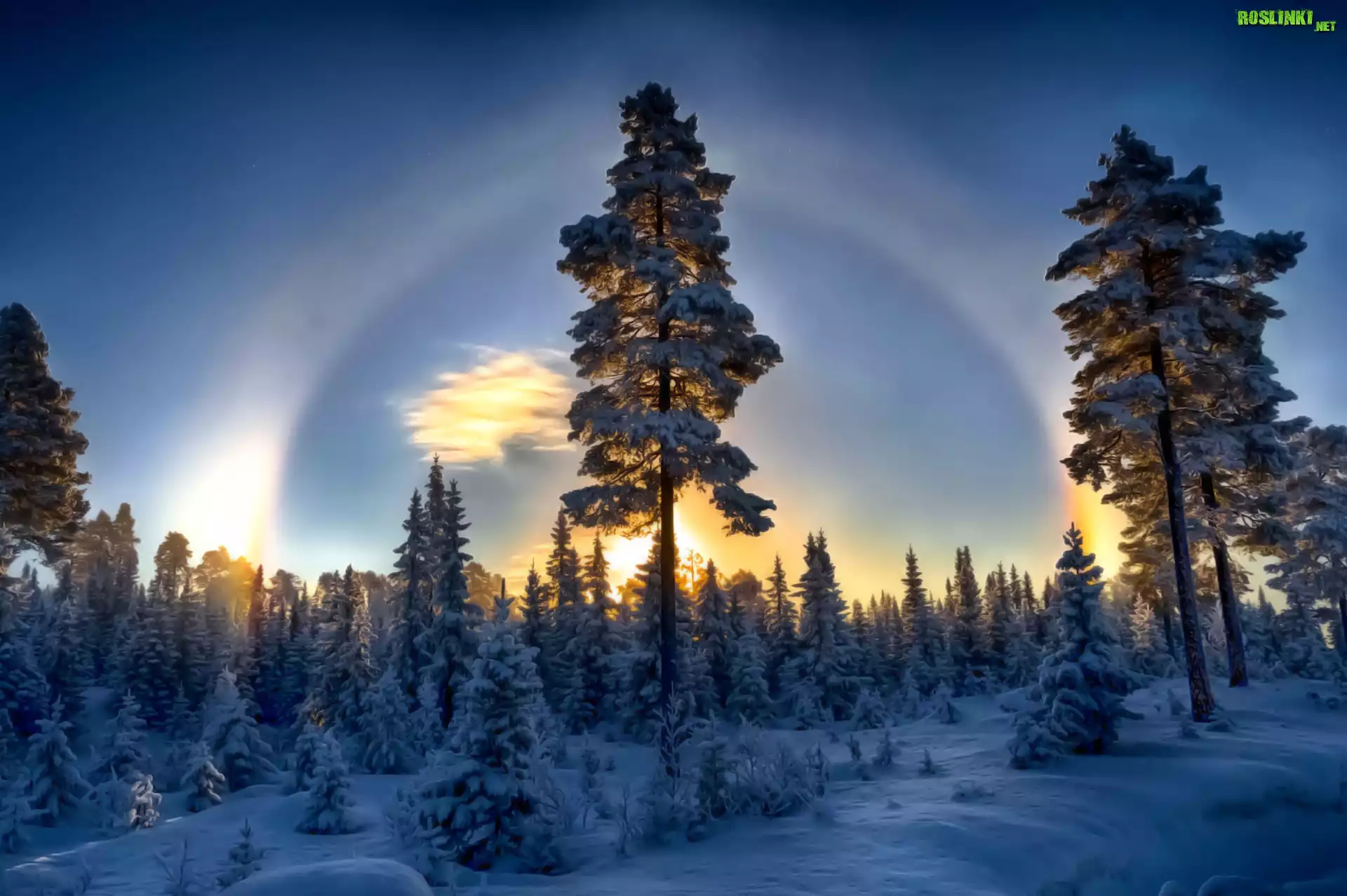 Rośliny: Zima, Ośnieżone, Świerki, Zachodzące, Słońce