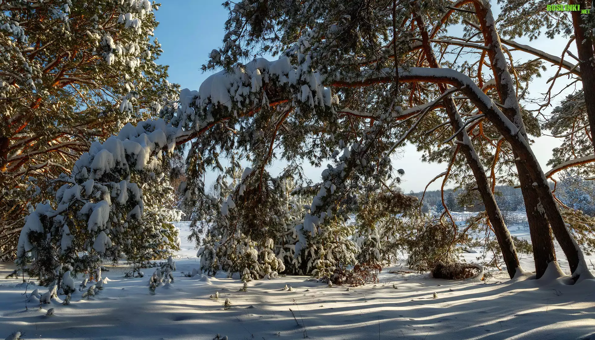 Rośliny: Zima, Śnieg, Drzewa, Zaśnieżone, Gałęzie