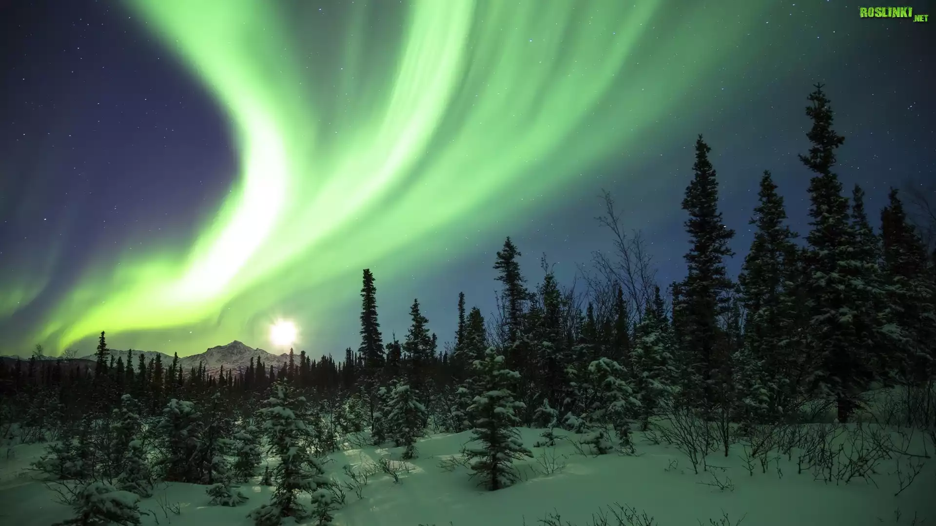 Rośliny: Zima, Drzewa, Zorza, Polarna
