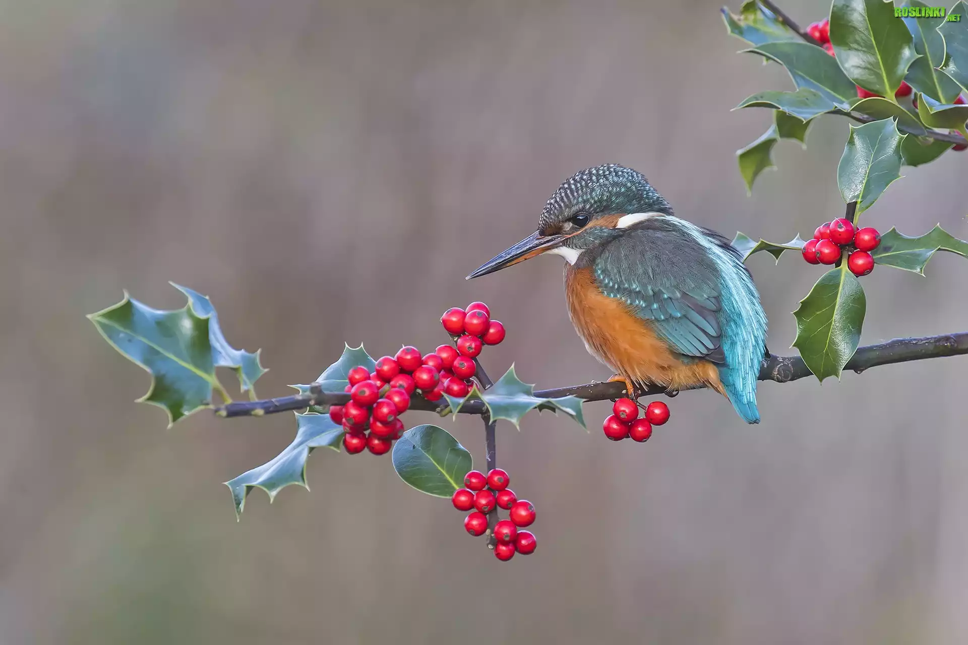 Rośliny: Zimorodek, Gałązka, Ostrokrzew kolczasty