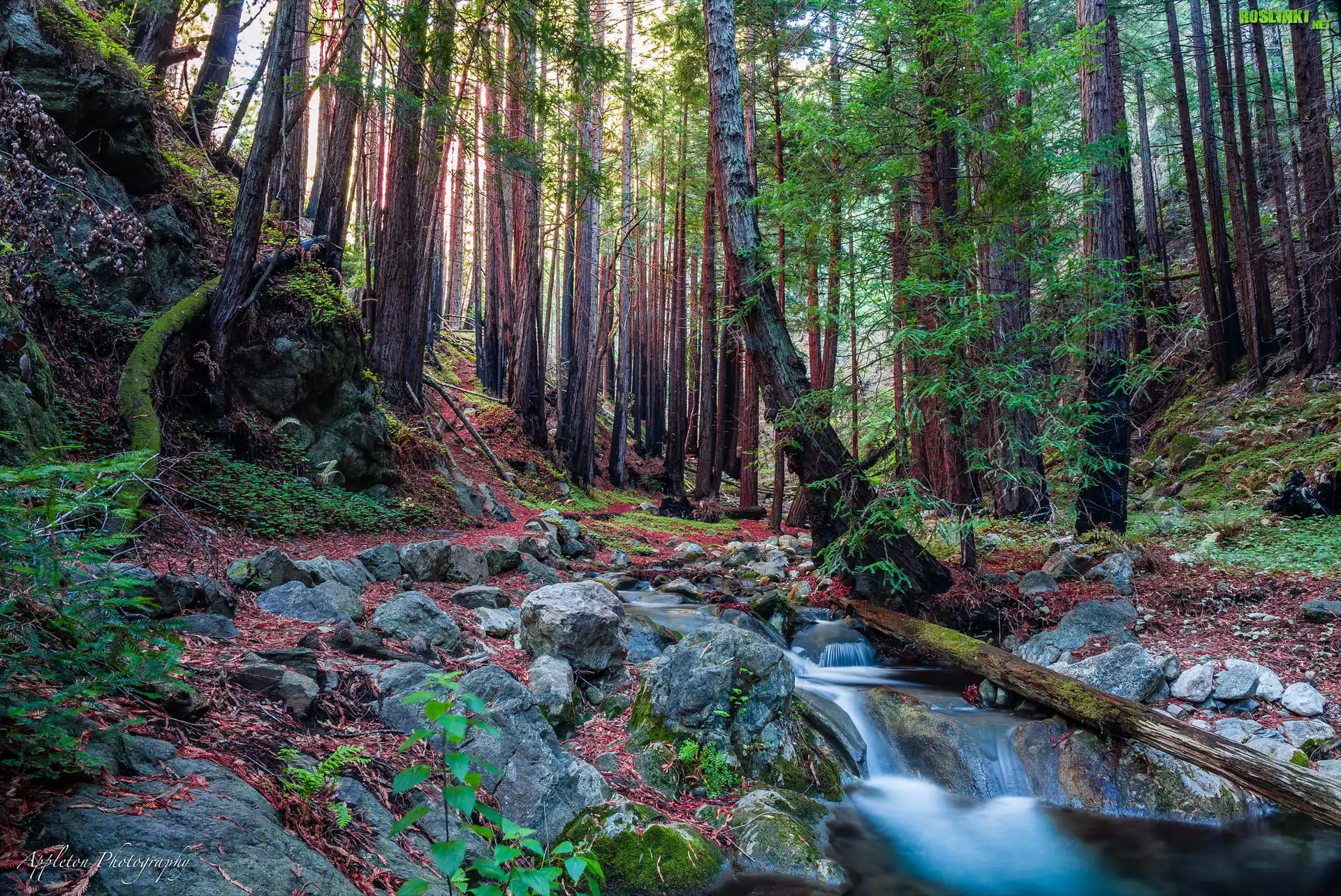 Rośliny: Las, Drzewa, Park Narodowy Redwood, Drzewa, Strumień, Kalifornia, Stany Zjednoczone