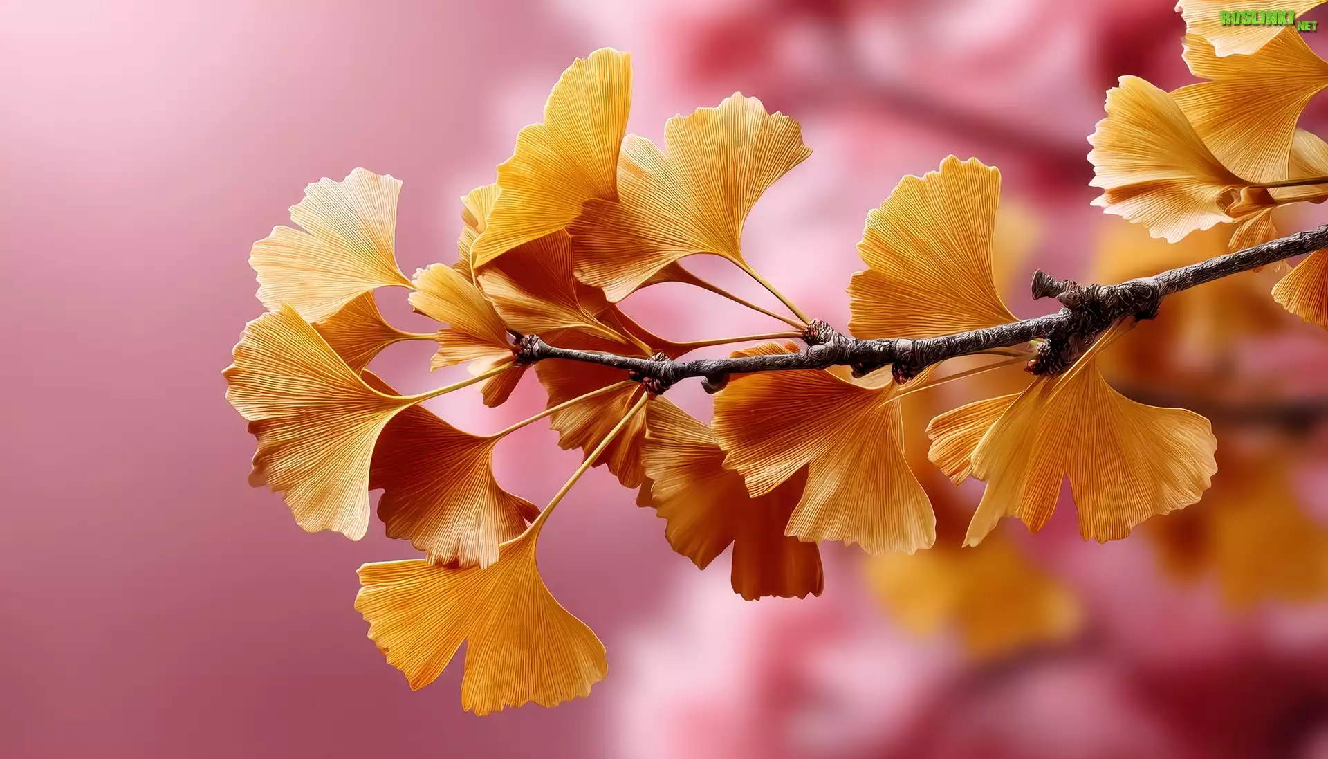 Rośliny: Miłorząb japoński, Gałązka, Żółte, Liście, Grafika