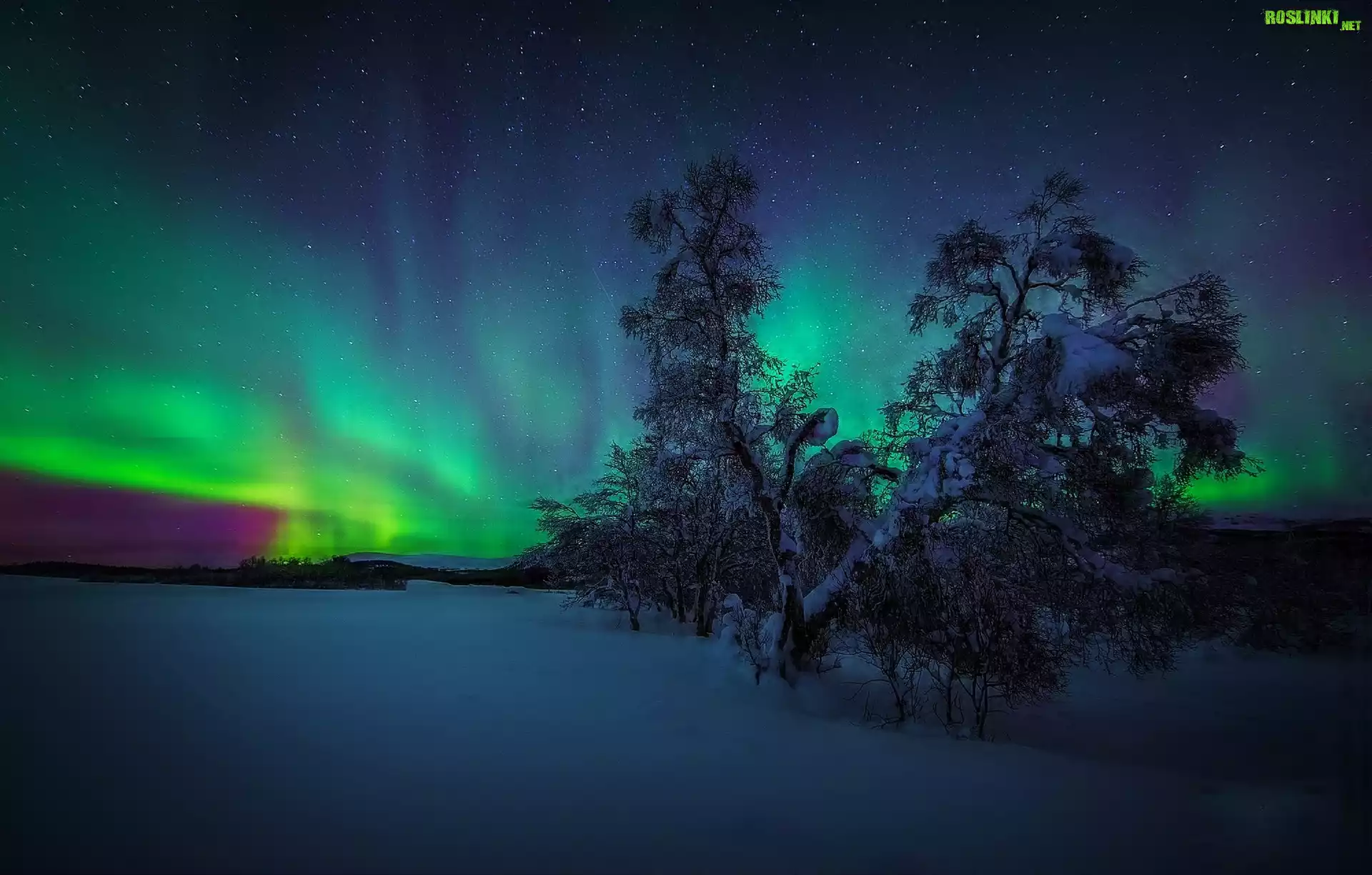 Rośliny: Zorza, Polarna, Drzewa, Zima