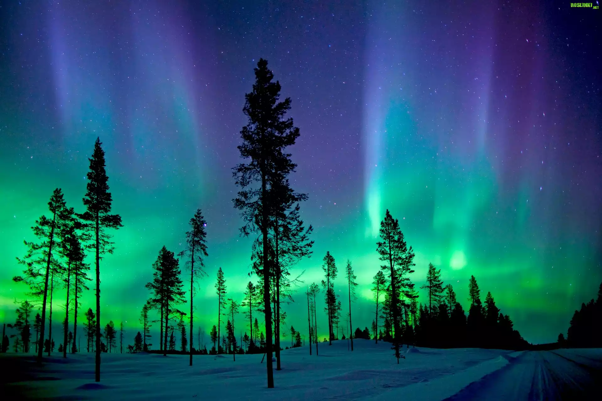 Rośliny: Zorza Polarna, Zima, Drzewa